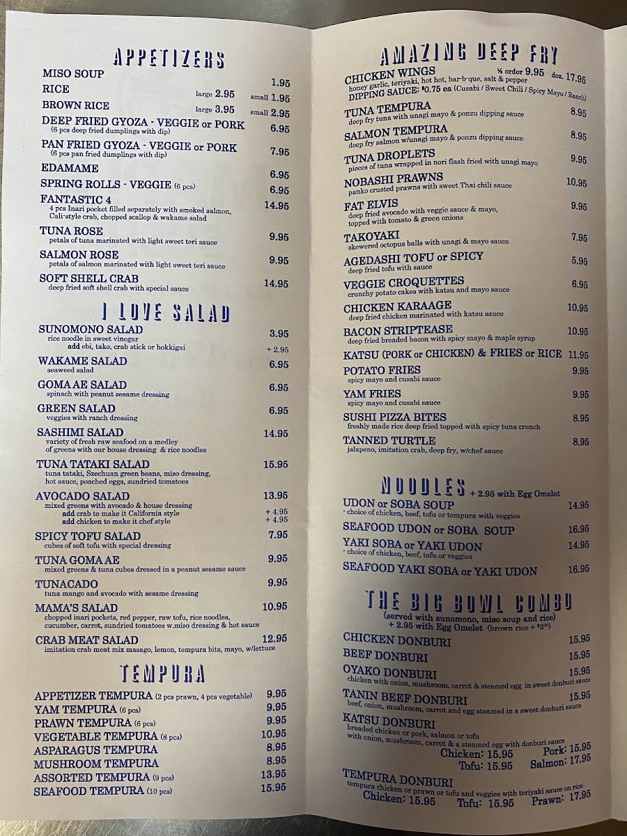 Maple Sushi, nestled in Maple Ridge, offers an eclectic menu that is both exciting and accessible. This delightful eatery prides itself on a broad selection of sushi, with options catering to various dietary preferences, including gluten-friendly and vegan dishes. Customers rave about the standout items like the pan-fried gyozas and inventive rolls such as the whimsical Barbie Roll and Sweaty Moose Roll, making each visit a culinary adventure.